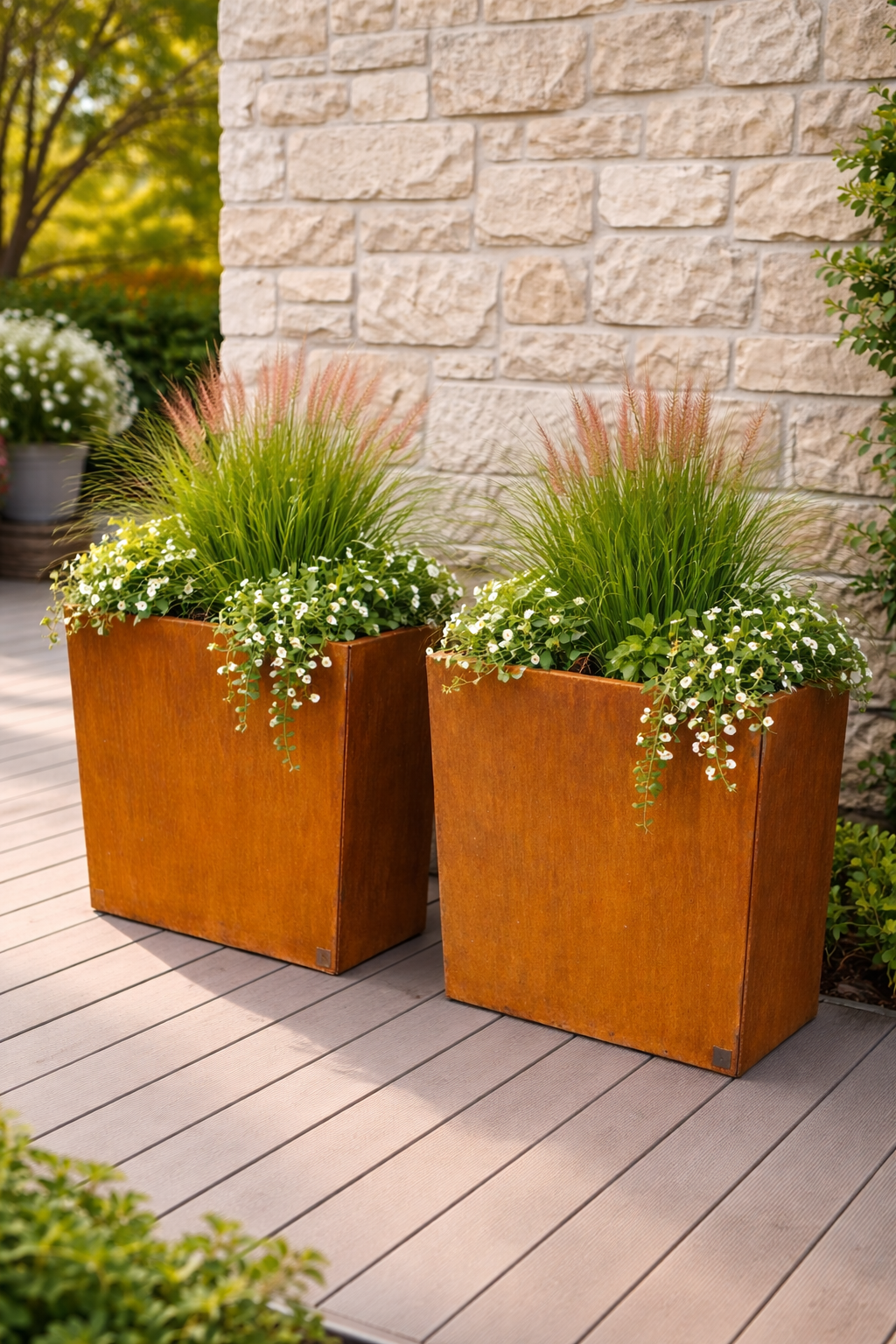Upptäck Recals blomlådor i cortenplåt, perfekta för att ge din trädgård eller offentliga miljö en elegant och designad touch. Tillverkade med en tjocklek på 1,5 mm, garanterar dessa blomlådor hållbarhet och stabilitet under lång tid framöver.