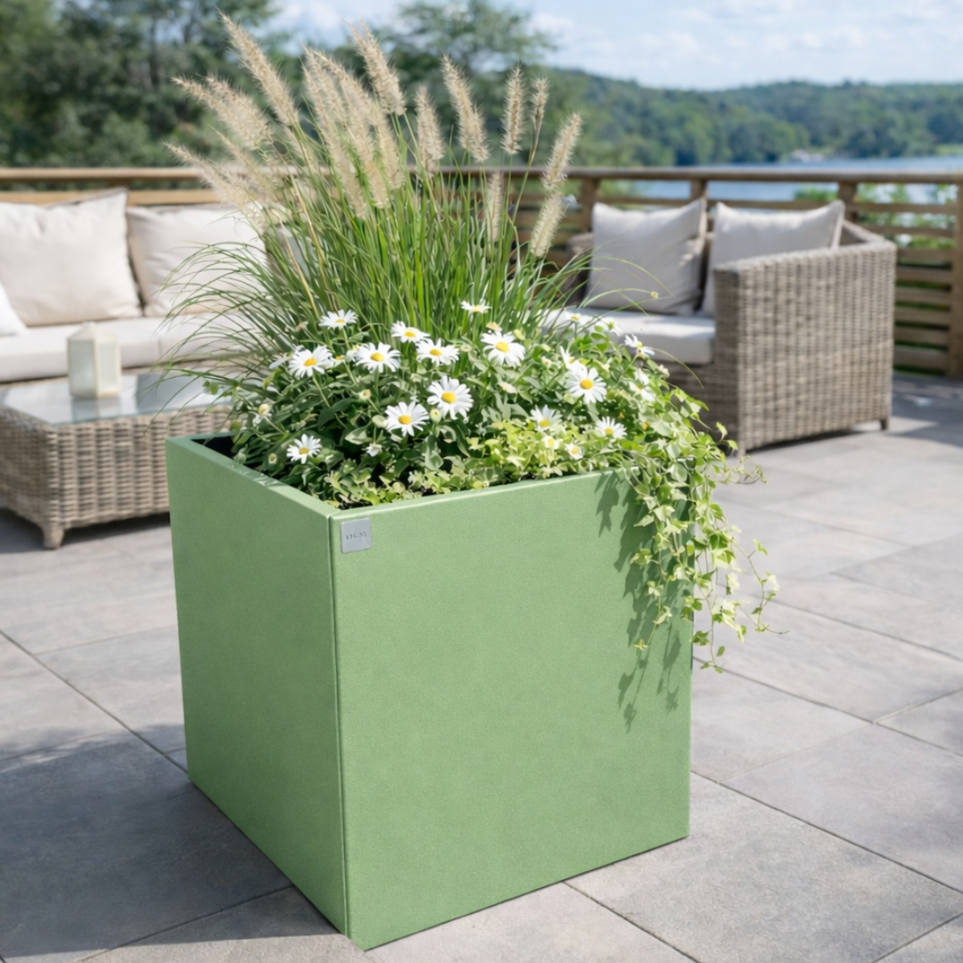 Recals Vårgröna planteringskärl i storlek 55x55x55cm med en tjocklek på 1,5mm med dubbelbockad överkant och botten, tillverkad i Sverige!