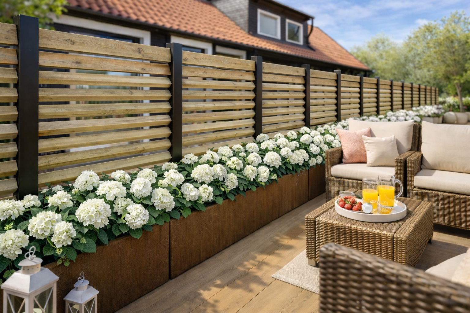 Mien är mer än bara ett staket – det är en investering i både stil och praktiskt användande. Den eleganta designen smälter sömlöst samman med omgivningen och förhöjer utseendet på din uteplats. Oavsett om det är för att skapa avskildhet, definiera gränser eller bara för att lägga till en touch av sofistikering till din utomhusmiljö, kommer Mien att uppfylla dina förväntningar och överträffa dem.